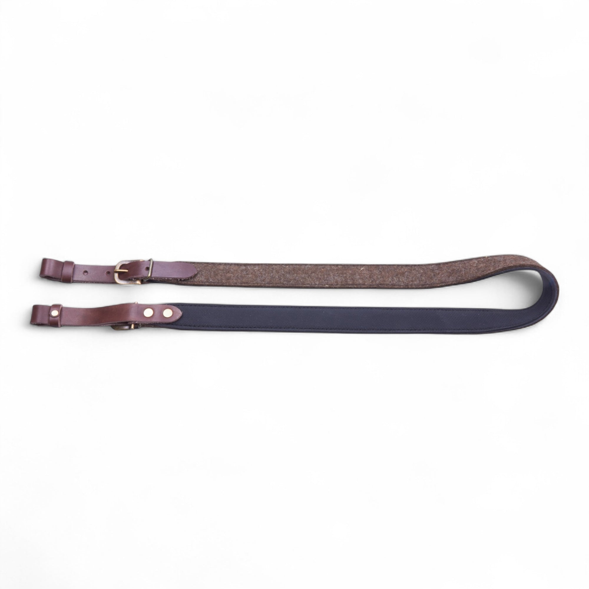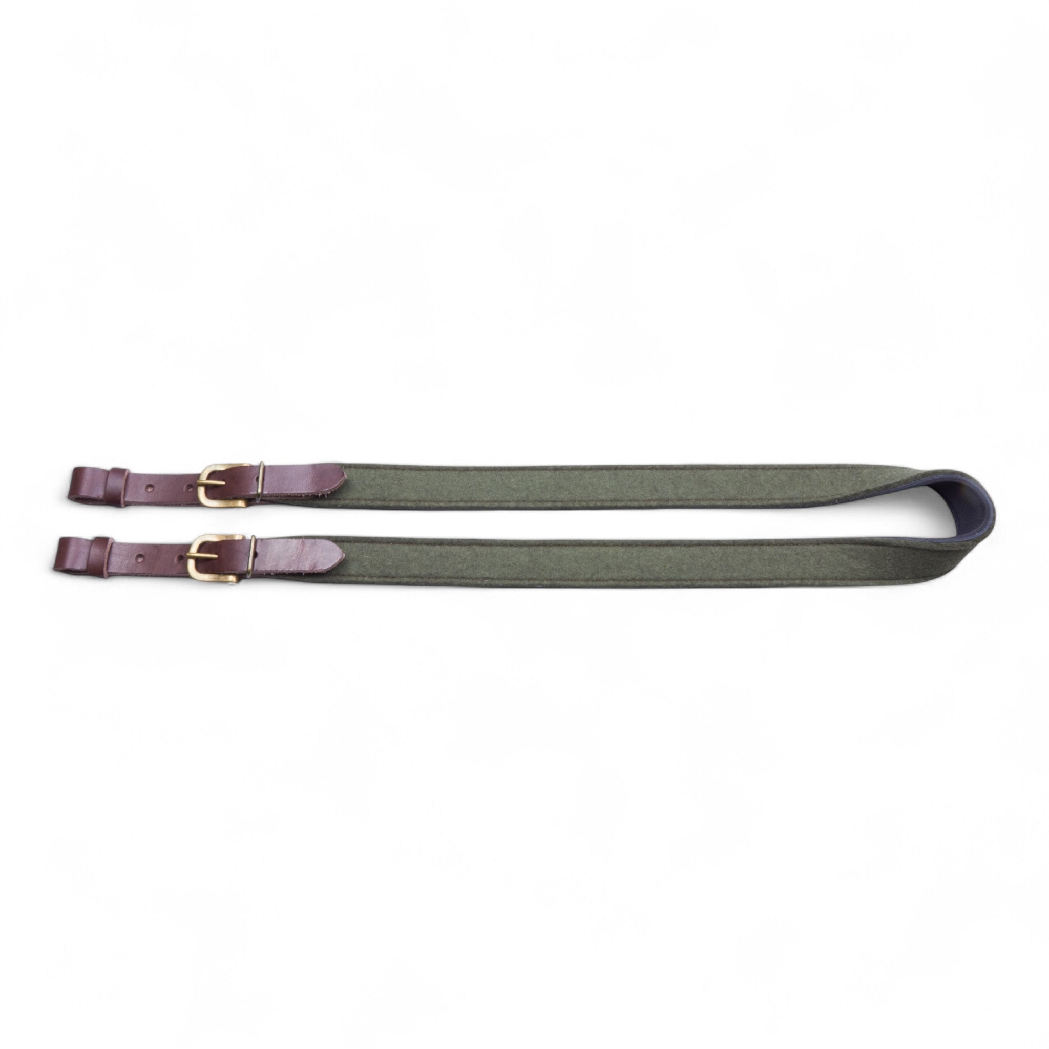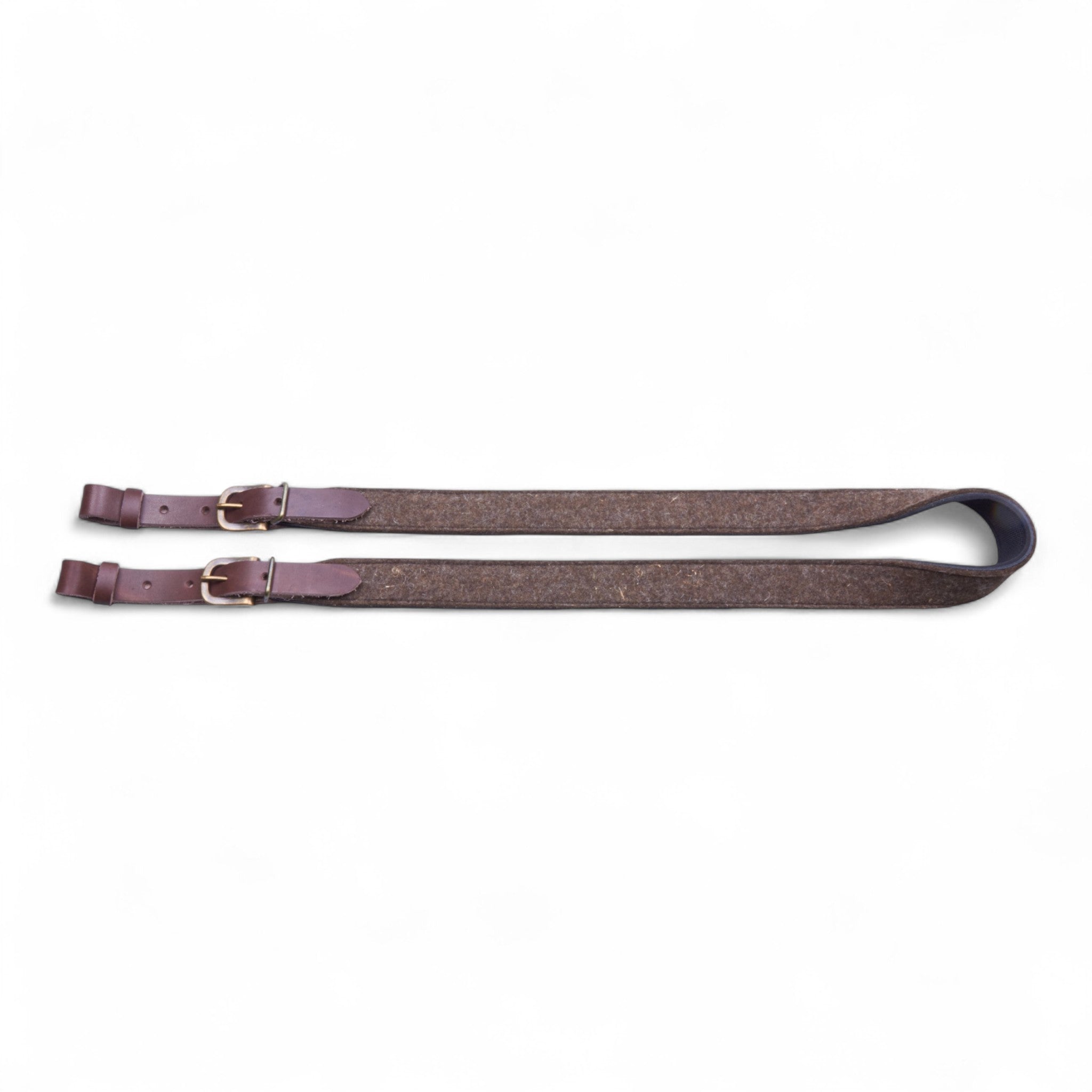 Unser Klassiker - der 3cm breite Gewehrriemen aus Wollfilz, Befestigungs-Schnallenstücken aus Rindleder und rutschfester Neoprengummiunterlage ist unser beliebtester Riemen.