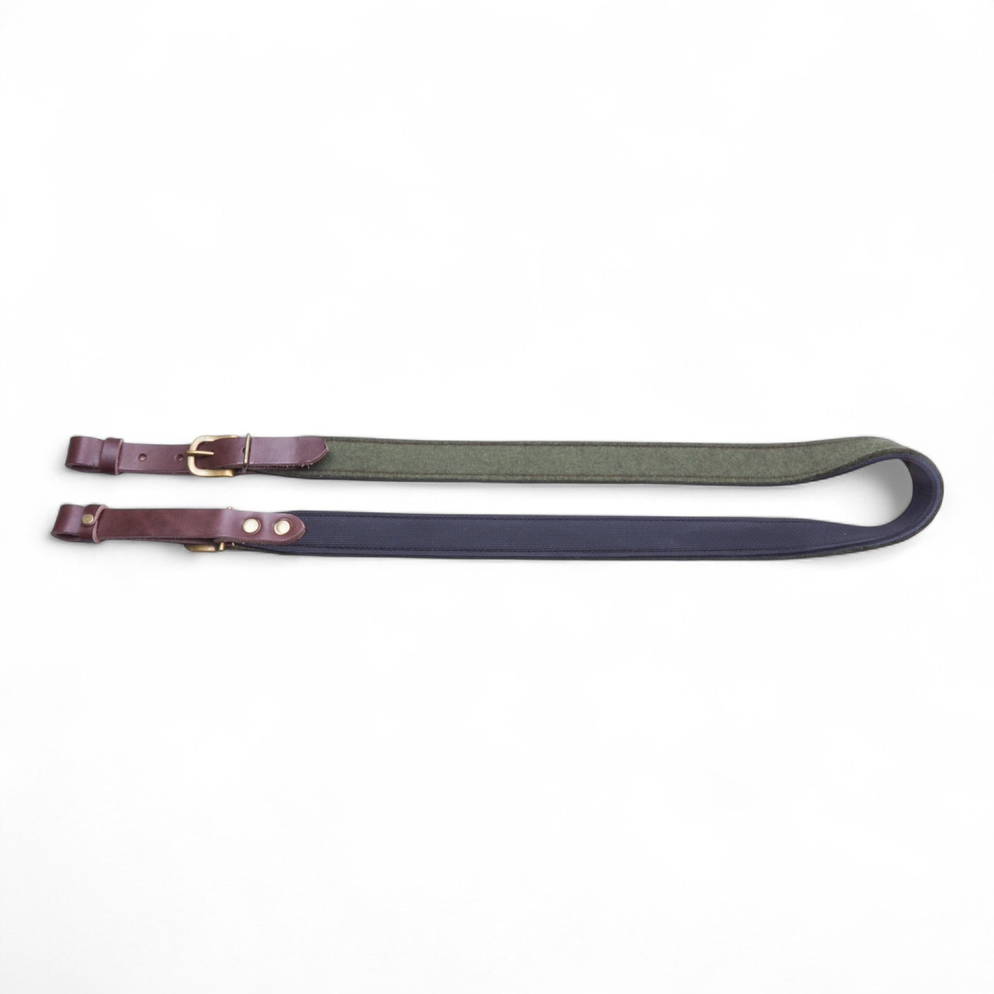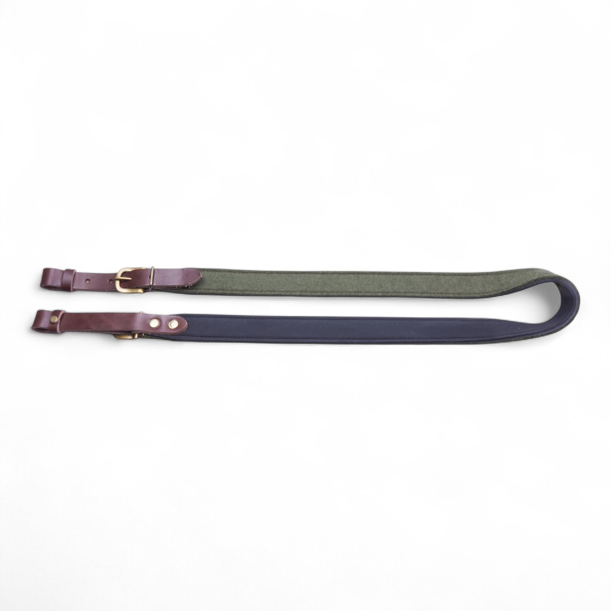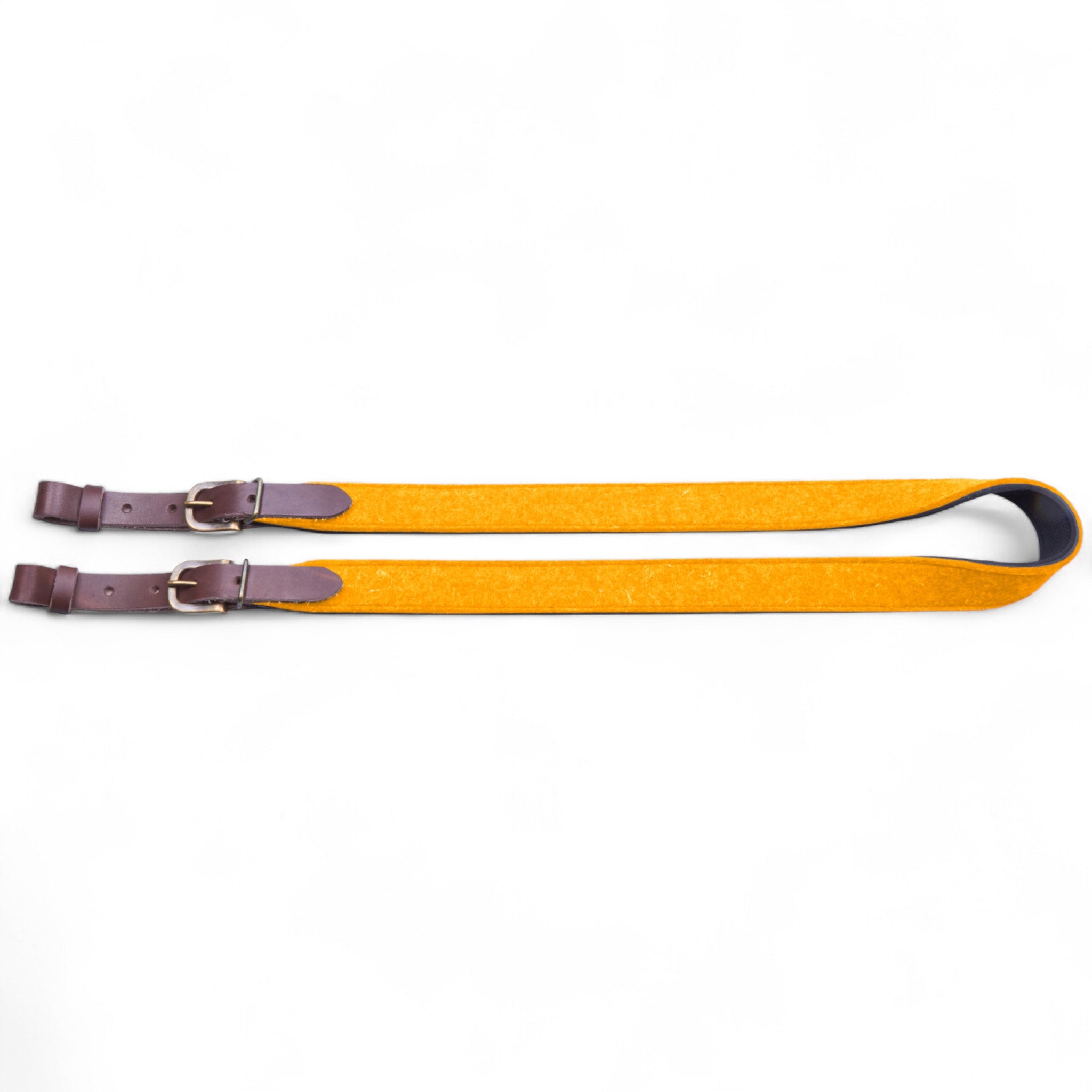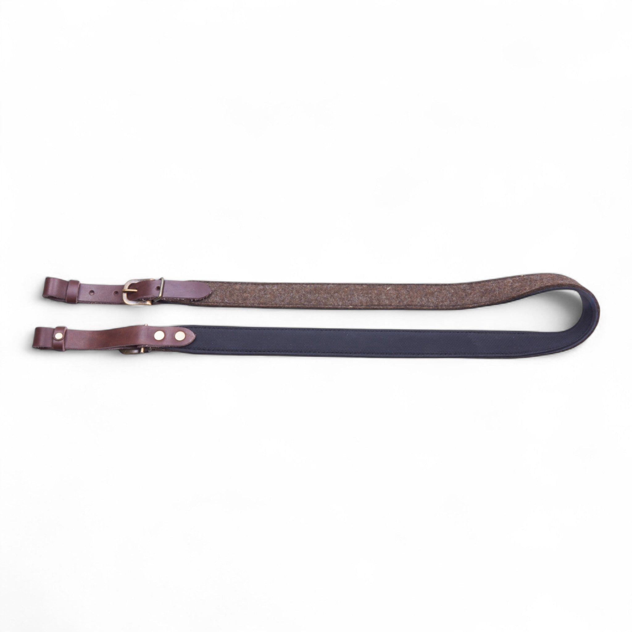 Unser Klassiker - der 3cm breite Gewehrriemen aus Wollfilz, Befestigungs-Schnallenstücken aus Rindleder und rutschfester Neoprengummiunterlage ist unser beliebtester Riemen.