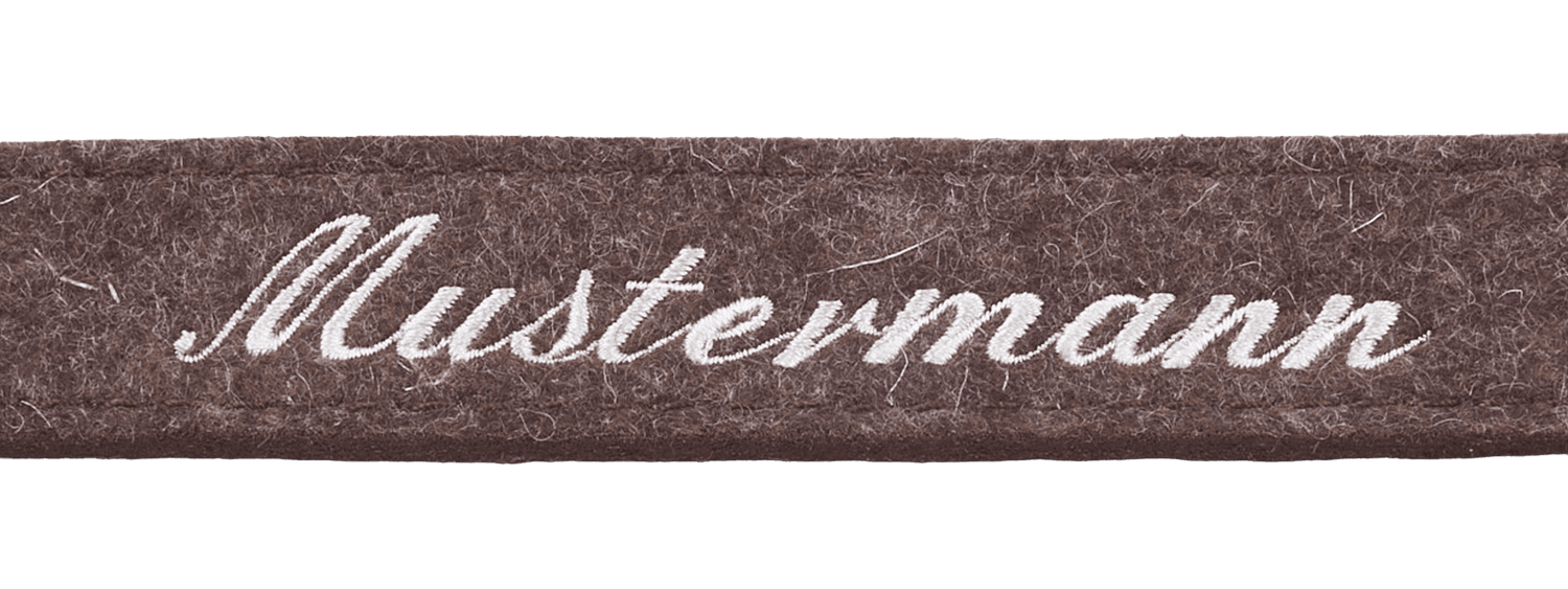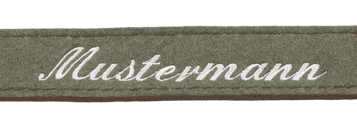 Unsere Filz-Gewehrriemen lassen sich auf Wunsch individuell besticken – ob mit einem Kaliber, einem Namen oder einer kurzen Beschriftung deiner Wahl. Die hier gezeigten Beispiele dienen dazu, dir einen Eindruck zu vermitteln, wie unterschiedliche Schriftarten, Farben und Positionierungen wirken können.Jede Stickerei wird mit viel Sorgfalt und Liebe zum Detail umgesetzt. So entsteht ein persönliches Unikat, das nicht nur funktional ist, sondern auch optisch überzeugt – ideal als Geschenk oder für den eigenen Gebrauch.Bitte beachte: Die dargestellten Stickereien sind Musterbeispiele. Durch die individuelle Anfertigung können geringe Abweichungen in Farbe oder Platzierung auftreten.
