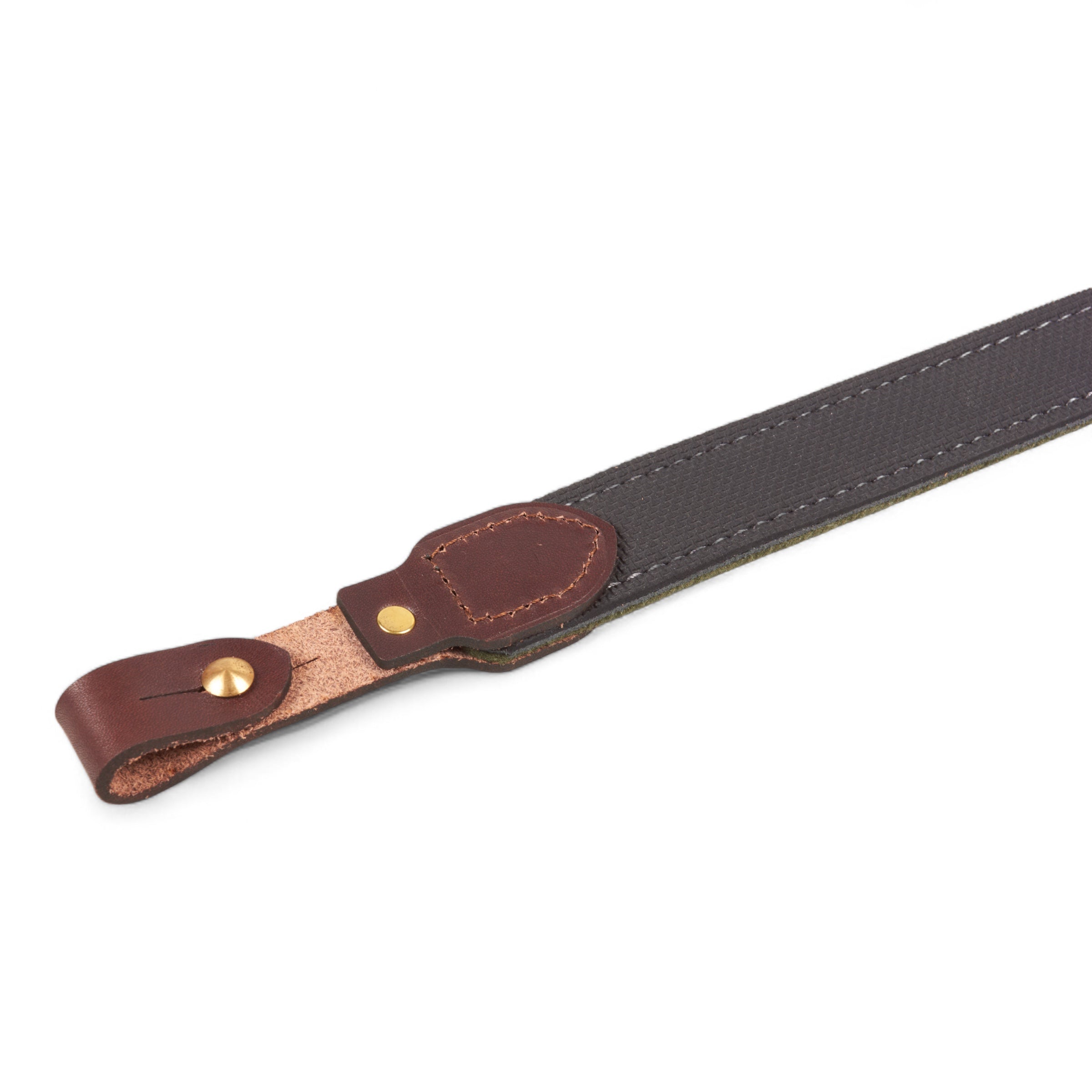 Der 3cm breite Gewehrriemen wird mit Neoprengummi unterlegt um die bestmögliche Rutschfestigkeit zu erreichen. An den Enden ist ein altbekannter und Traditioneller Knopfverschluss angebracht, ganz einfach anzubringen --> Lederlasche durch den Riemenbügel schieben, Knopf schließen, fertig. An der Laufseite des Gewehrs befindet sich ein breites Zugteil mit einem lederummantelten Holzknebel. Durch Zug an diesem Knebel, kann der Riemen schnell und bequem verkürzt bzw. an die Länge zwischen den Riemenbügeln angepasst werden und "baumelt" nicht umher. Perfekt auch um auf der Kanzelbrüstung etc. aufzulegen. Der Loden wird mit Rindleder eingefasst.