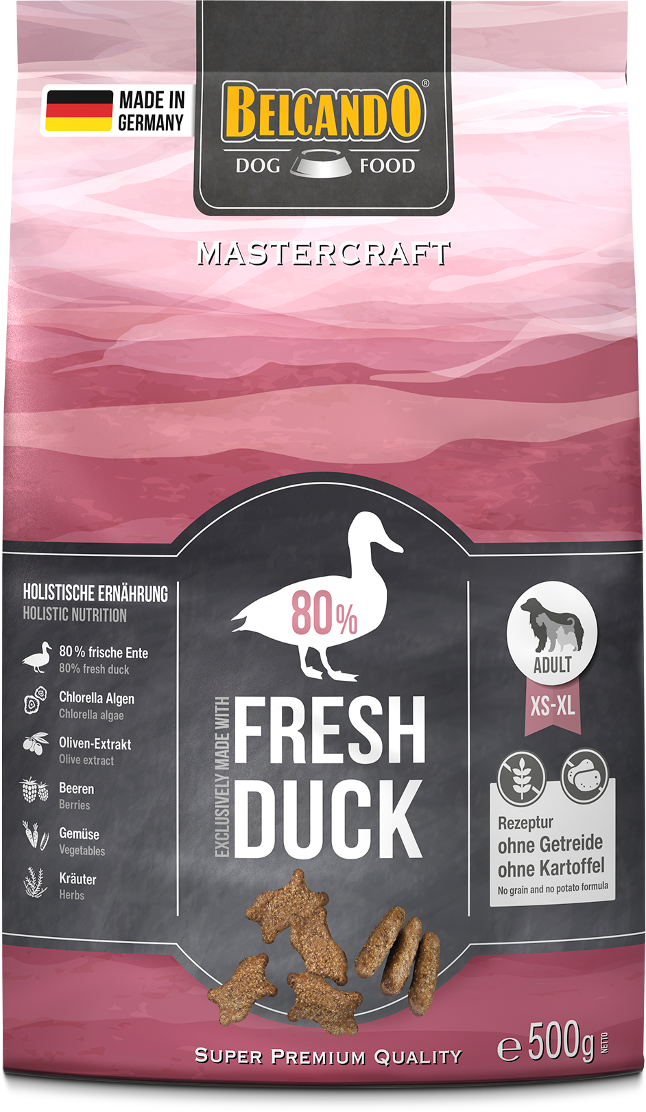 Mit BELCANDO® MASTERCRAFT schmeckt Ihr Hund den Unterschied. Da unsere Rezepturen aber nicht nur ausschließlich viel frisches Fleisch enthalten, sondern auch erlesene pflanzliche Zutaten, sind sie hervorragend verträglich. Die wertvollen Nährstoffe aus Gemüse, Kräutern und Beerenmischungen ergänzen das frische Fleisch auf sinnvolle Art und entsprechen dem natürlichen Ernährungsmuster unserer Hunde.