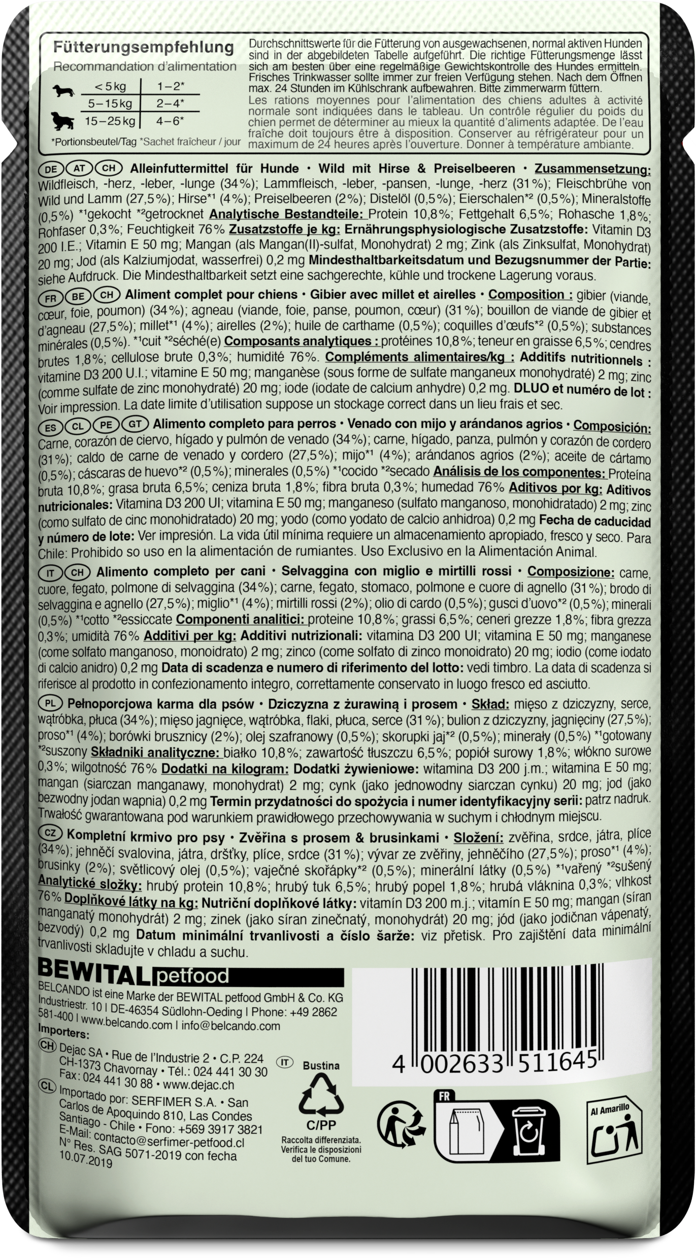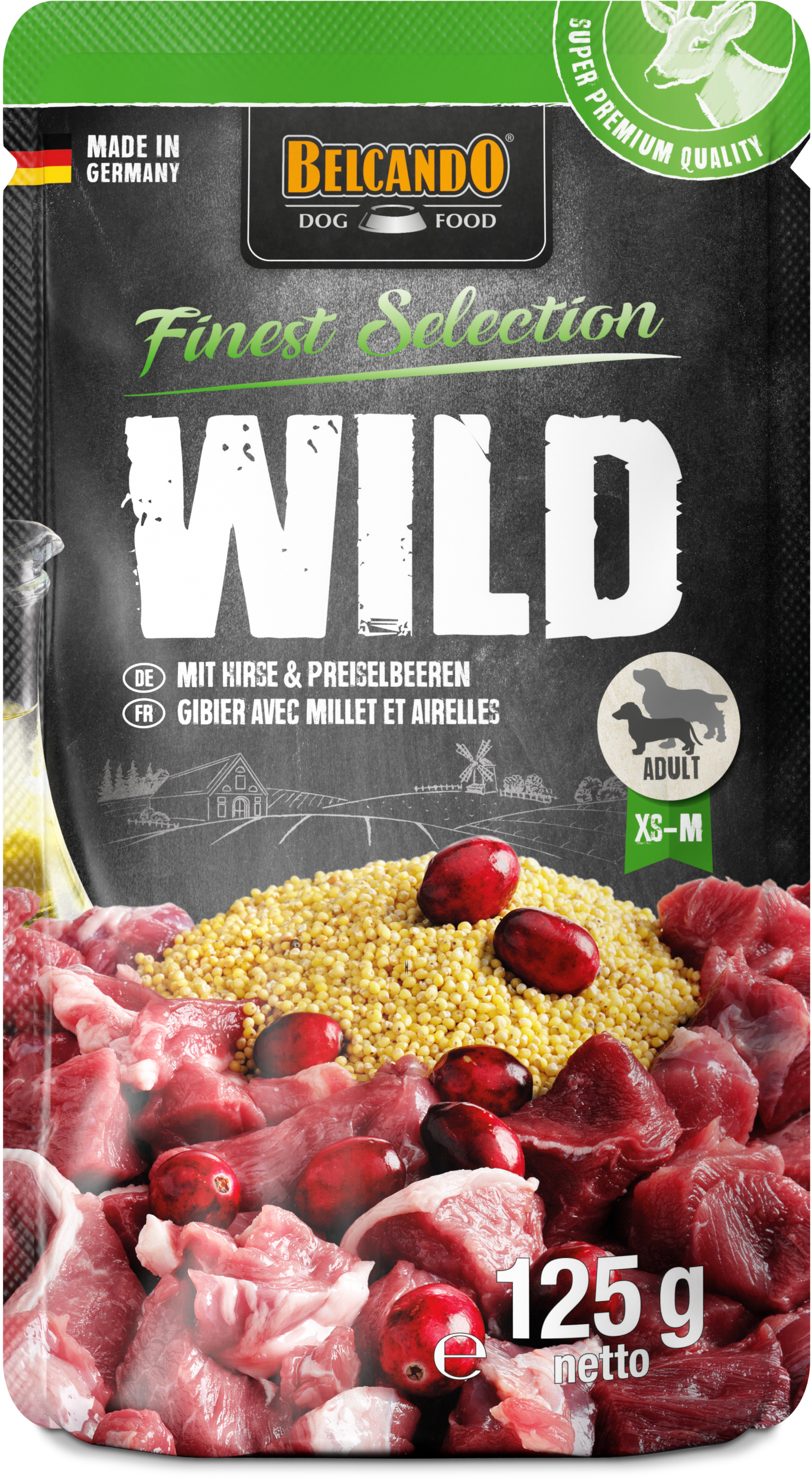 Exzellente Rezepturen in praktischen Einzelportionen. Saftiges Fleisch, mit raffinierten Zutaten verfeinert, wird schonend im Portionsbeutel gegart. Kalt gepresstes Distelöl liefert essentielle ungesättigte Fettsäuren. Außergewöhnlich schmackhaft und bekömmlich eignet sich BELCANDO® FINEST SELECTION hervorragend für sensible oder wählerische Hunde.
