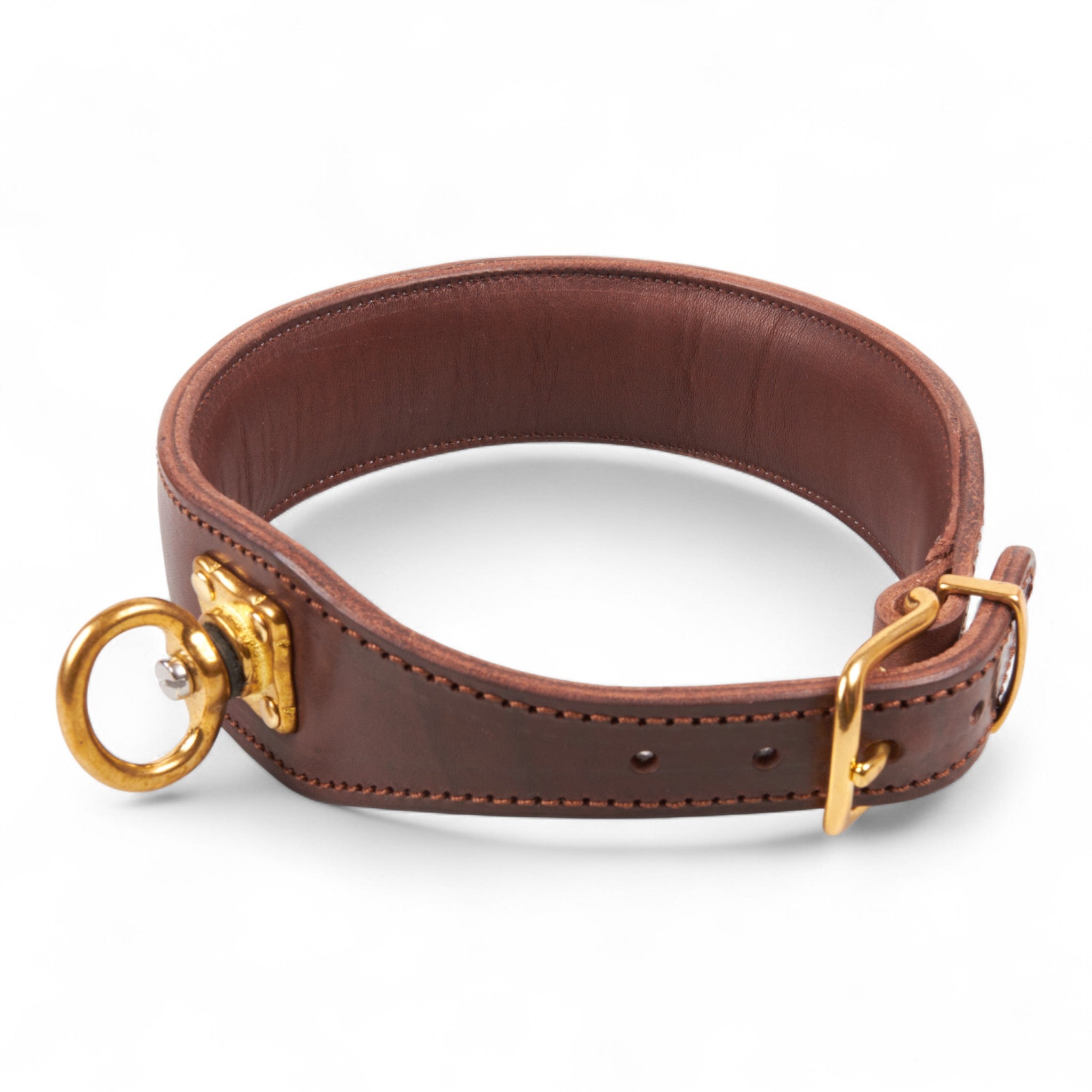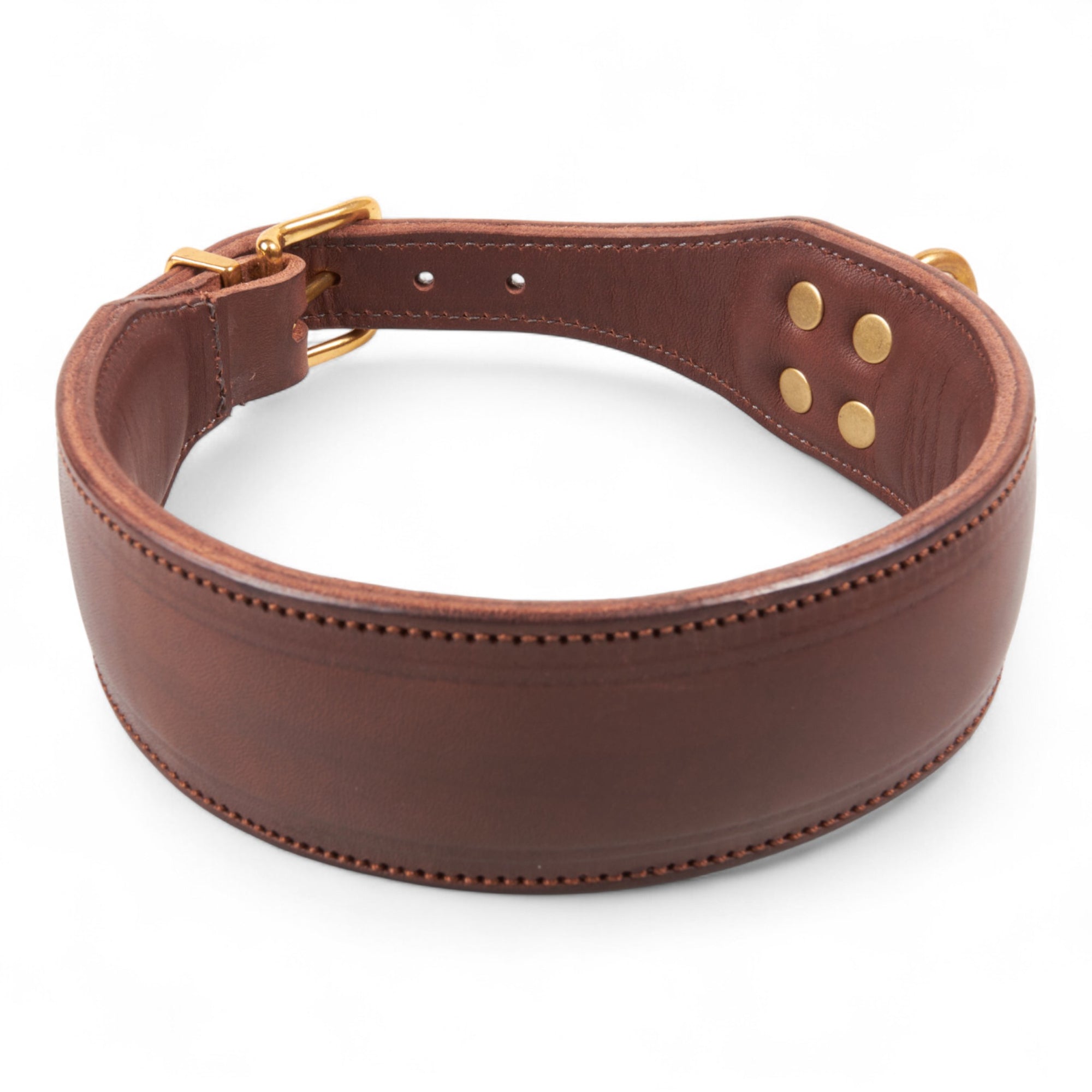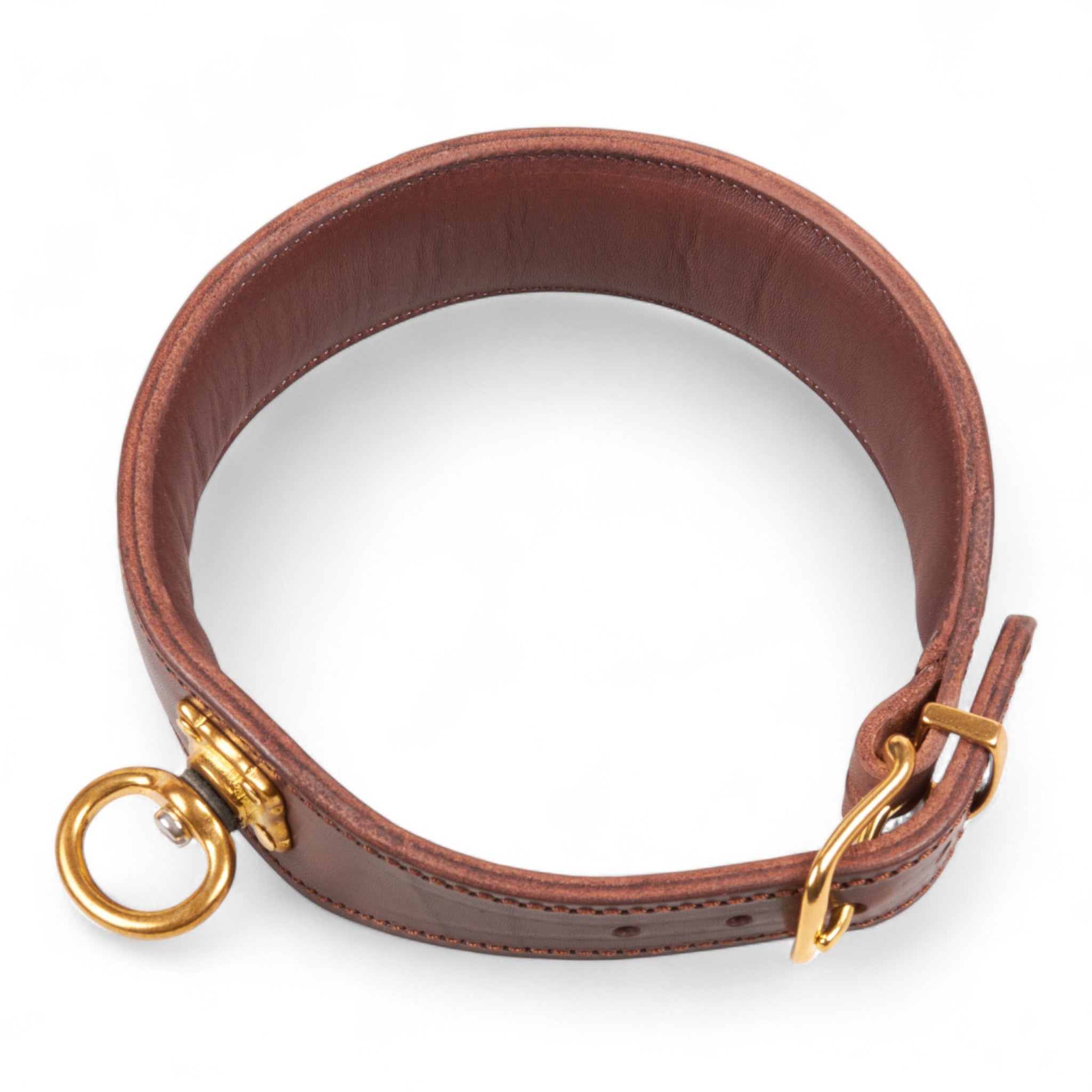 Unsere Schweißhalsung ist mit robusten Messingbeschlägen versehen, die nicht nur für eine stilvolle Optik sorgen, sondern auch eine hohe Langlebigkeit und Beständigkeit gewährleisten. Die Schnalle ermöglicht ein einfaches An- und Ablegen der Halsung und bietet eine sichere Passform. Ein massiver Wirbel an der Halsung sorgt dafür, dass sich die Leine nicht verdrehen kann.