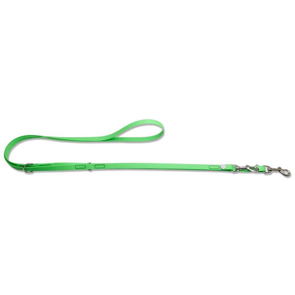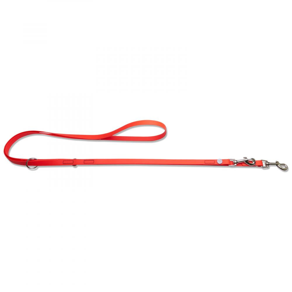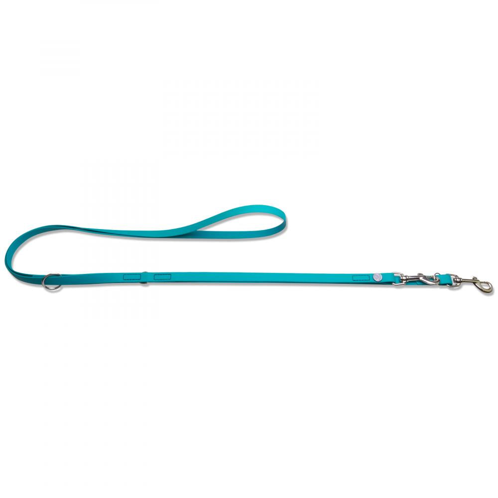 Diese verstellbare Leine von betaDog bietet eine durchdachte Materialqualität und hohe Flexibilität für den Einsatz im Alltag oder beim Training. Hergestellt aus dem firmeneigenen betaDog-Gurtmaterial mit geprägter Lederoptik, besitzt sie eine strukturierte Oberfläche, die wasserabweisend, UV-resistent und hoch abriebfest ist.