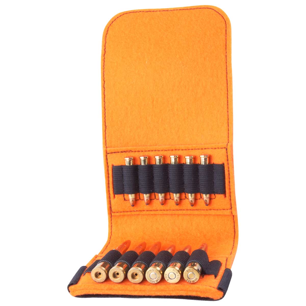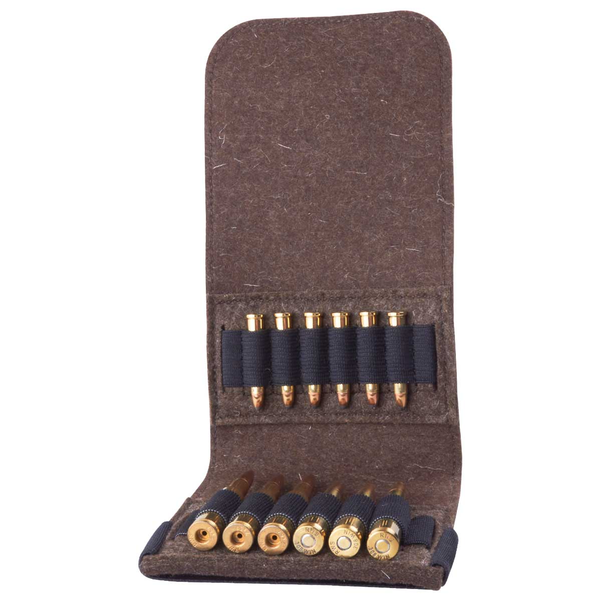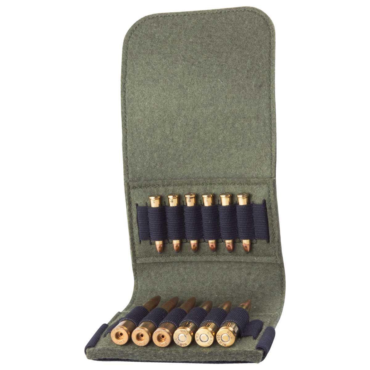 Das klappbare Patronenetui aus hochwertigem Wollfilz, bietet Platz für 6 große Kugelpatronen (z.B. 5,6x50R, .30-06, .308 WIN, 6,5x65R, 7x57, .300 WIN MAG, usw.) und 6 kleine Kugelpatronen (z.B. .22 lfb, .22 Hornet .222 Remington, usw.).Das Etui lässt sich vollständig aufklappen und schnell und einfach über eine Gummilasche schließen.