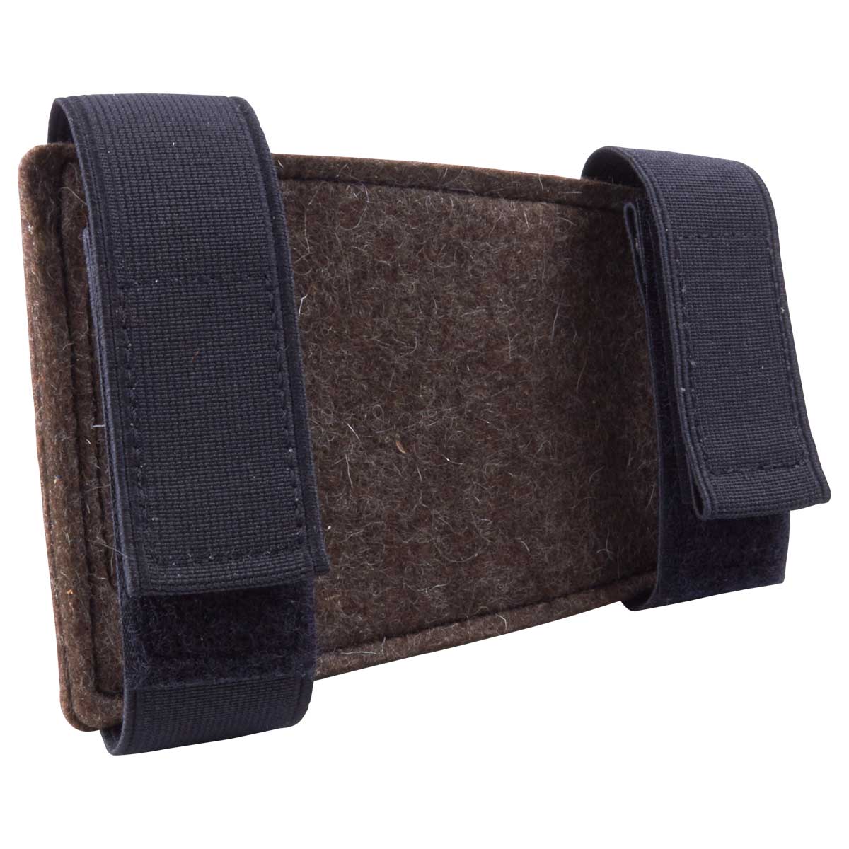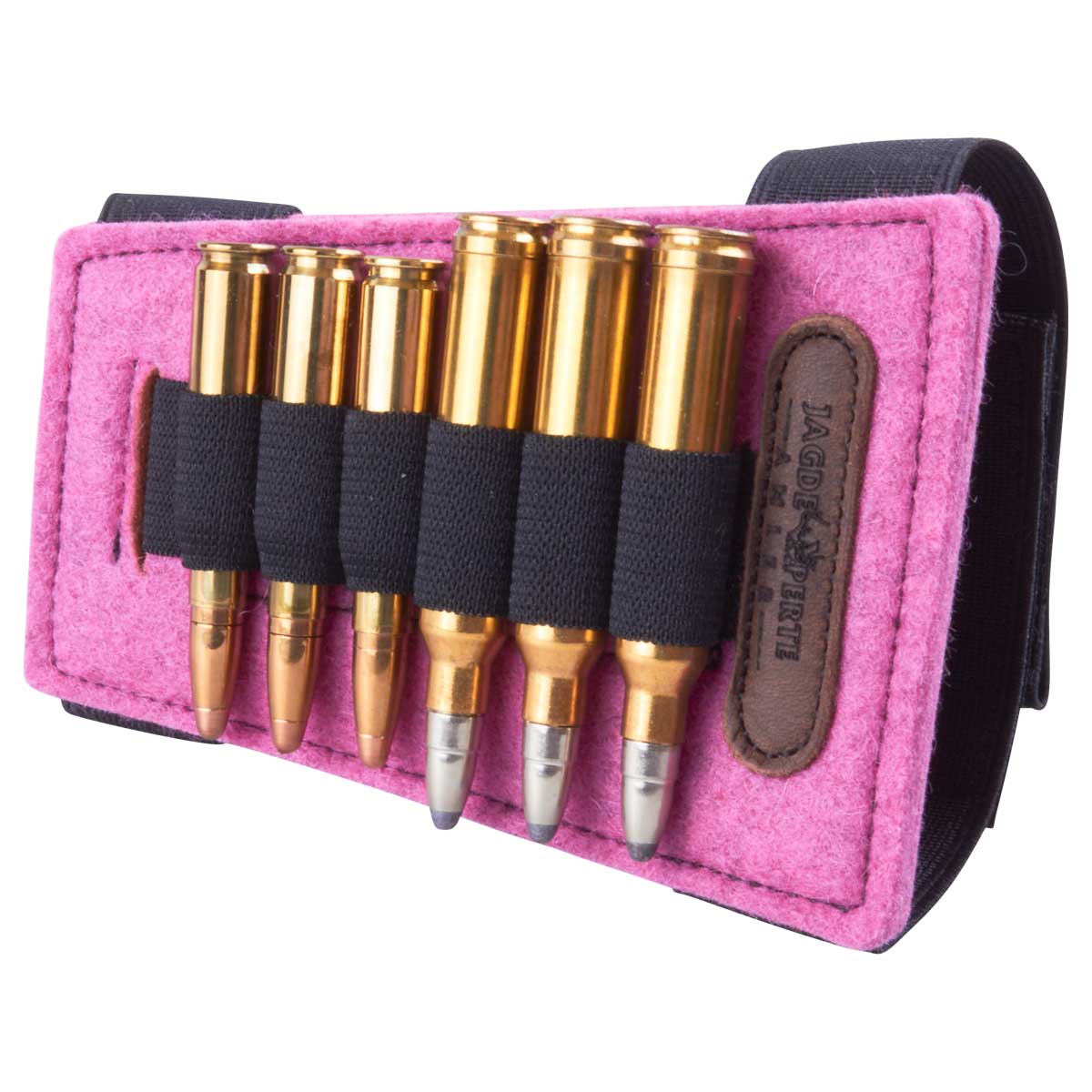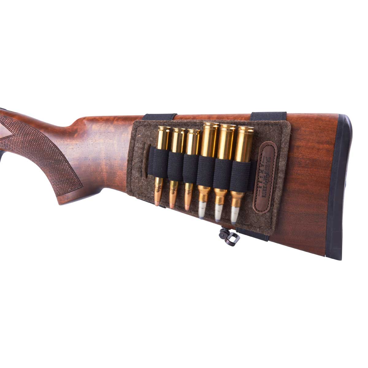 Das Schaft-Patronenetui aus hochwertigem Wollfilz, bietet Platz für bis zu 6 gängige Kugelpatronen (egal ob z.B. 5,6x50R, .30-06, .308 WIN, 6,5x65R, 7x57, .300 WIN MAG, usw.). Das Etui hat an der Rückseite 2 Gummilaschen, welche praktisch über einen Klettverschluss angelegt werden können, somit passt das Etui problemlos an allen Schäften.